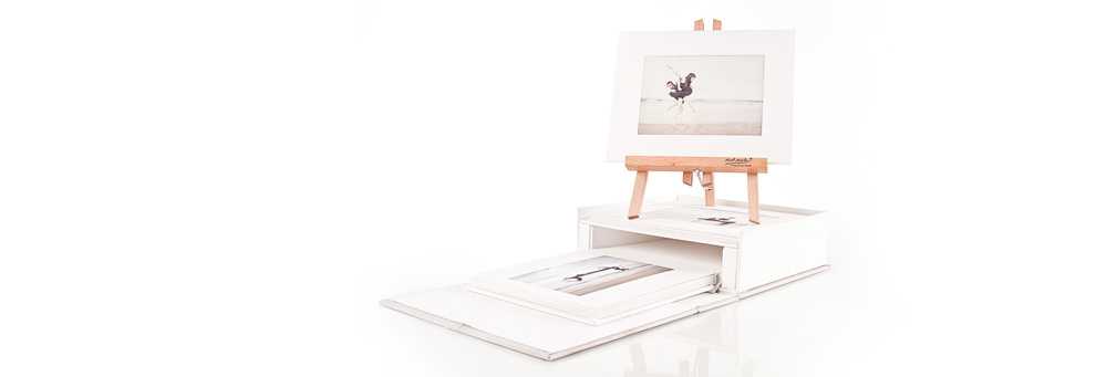 Portrait Suites are available in two size formats 8"x10" or 11"x14". The Portrait Suite box opens out to expose either a Slip-In or Gallery album housing twenty images, and a shelf holding five Art Mounts. The Portrait Suite Box is available in Linen or with a personalised photocover. Make sure that your photographer offers you a Portrait Suite on your next portrait sitting.
